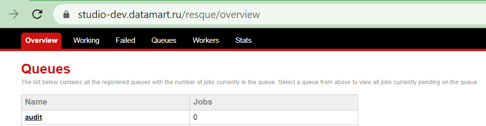 В интерфейсе Datamart Platform Studio в меню «Очереди задач» выводится информация об общем количестве очередей и обработчиков заданий, куда выводятся и воркеры услуг и системные воркеры. Команда resque-pool и настройка RESQUE_QUEUE_POOL_SIZE влияет только на количество воркеров услуг. Количество системных воркеров Datamart Platform Studio определяет самостоятельно, настройки на это не влияют.