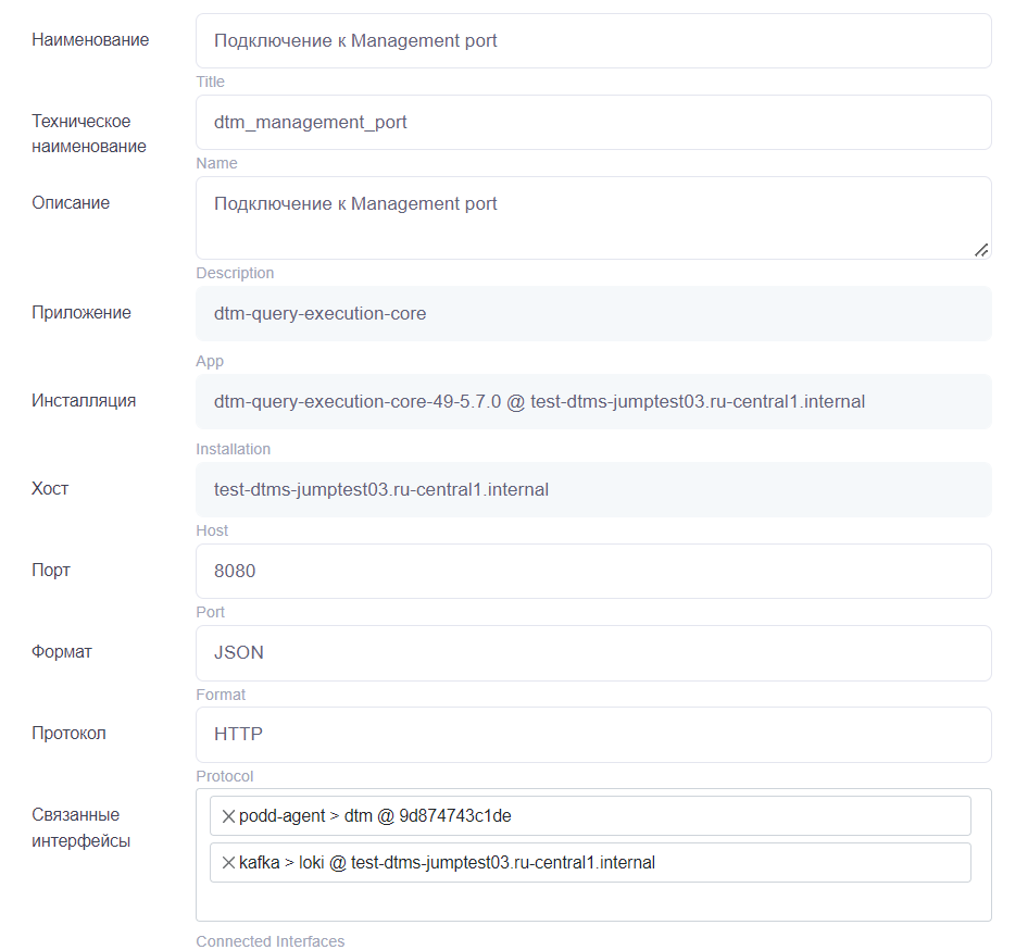 Рисунок 9.6 Раздел «Интерфейсы» в карточке инсталляции