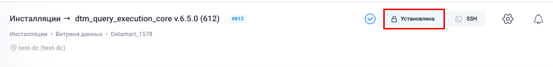 В карточке редактирования инсталляций можно установить флаг блокировки. Для заблокированных инсталляций будет отображаться значок блокировки и любые действия по изменению настроек или статуса блокированных инсталляций будут запрещены из интерфейса Datamart Platform Studio.