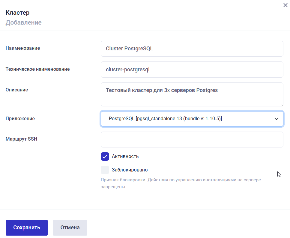В текущем разделе описывается установка кластера Postgres. Установка кластера Pangolin производится аналогичным образом.