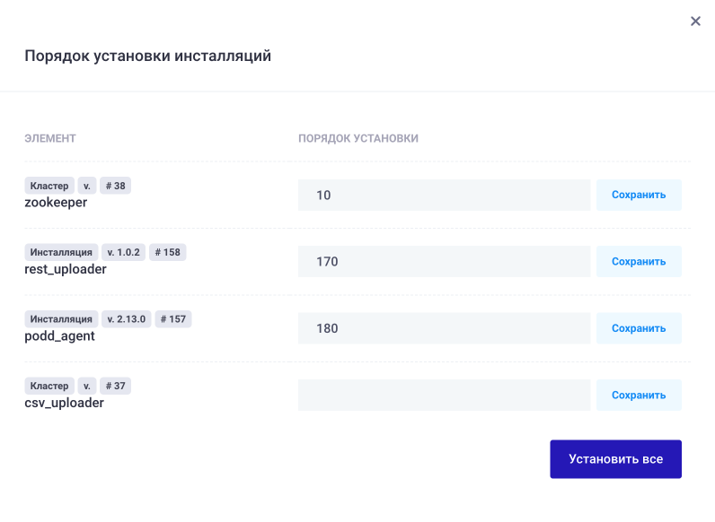 Если требуется поменять порядок установки, введите новое значение в поле «Порядок установки» и нажмите кнопку «Сохранить».